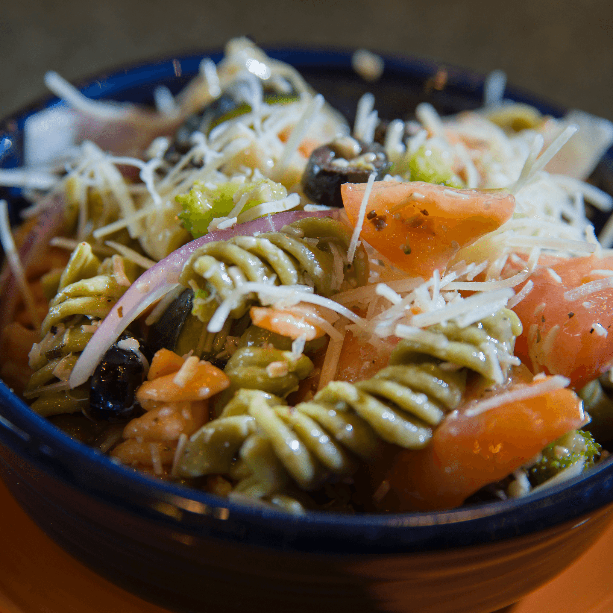 Made from scratch pasta salad is prepared fresh daily