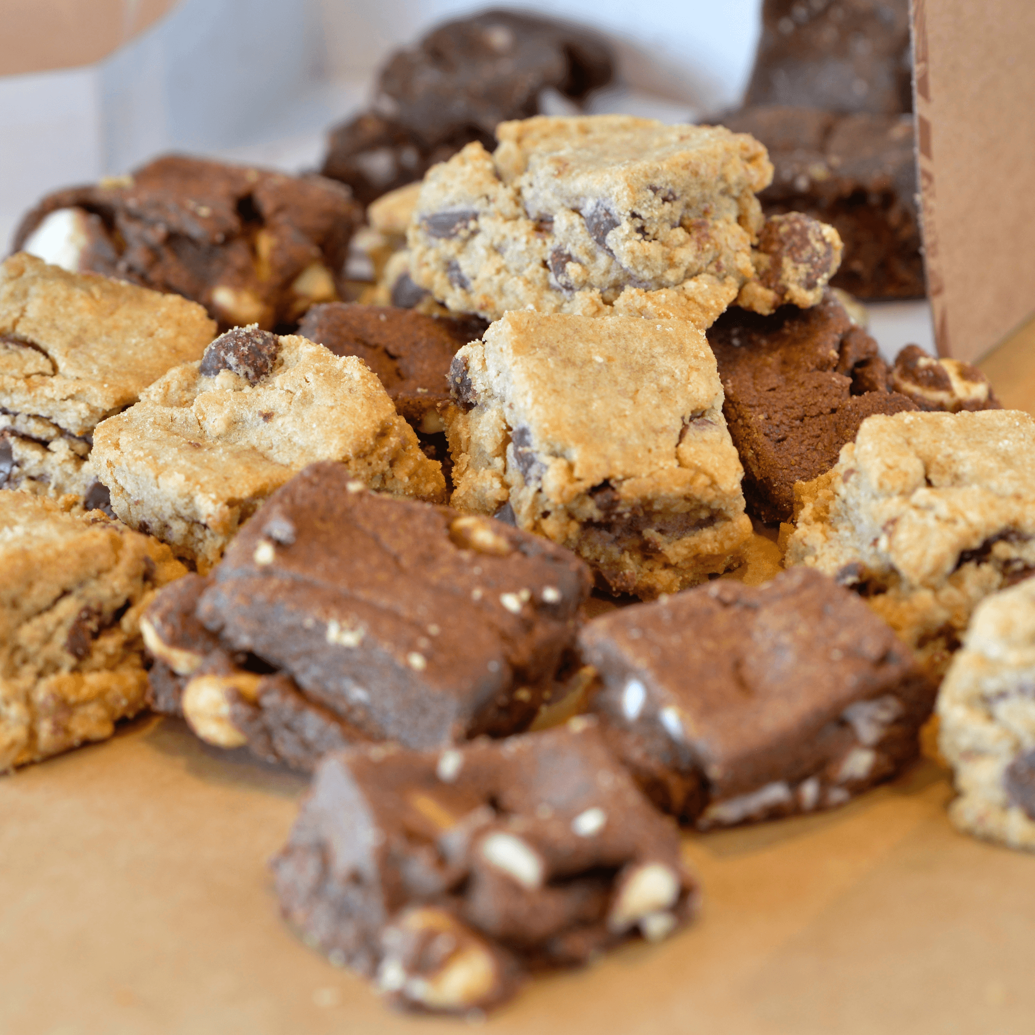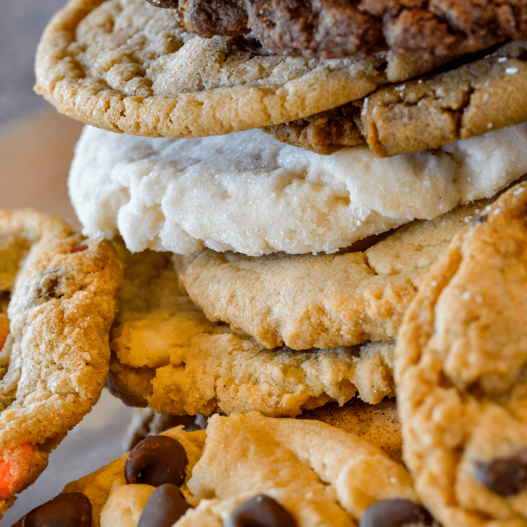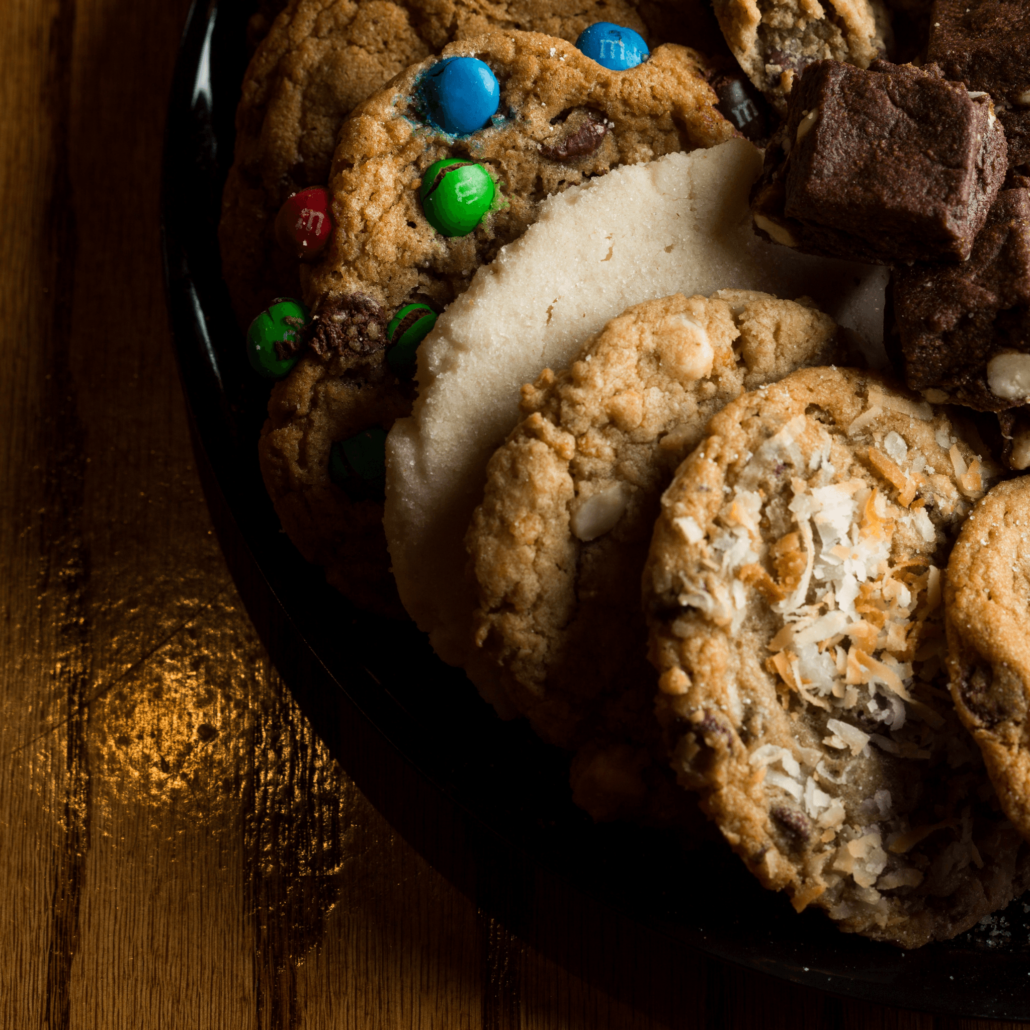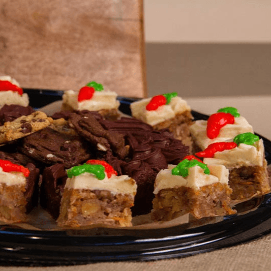 An Assortment of 18 of our famous freshly baked cookies and 12 chippers served on a party tray.