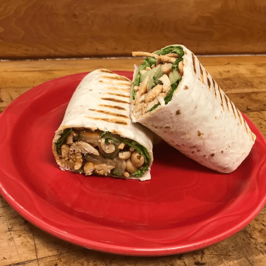 All-natural and antibiotic-free chicken with pecans, bleu cheese, apple chips, red onion and tomato paired with a sweet white apple balsamic vinaigrette.