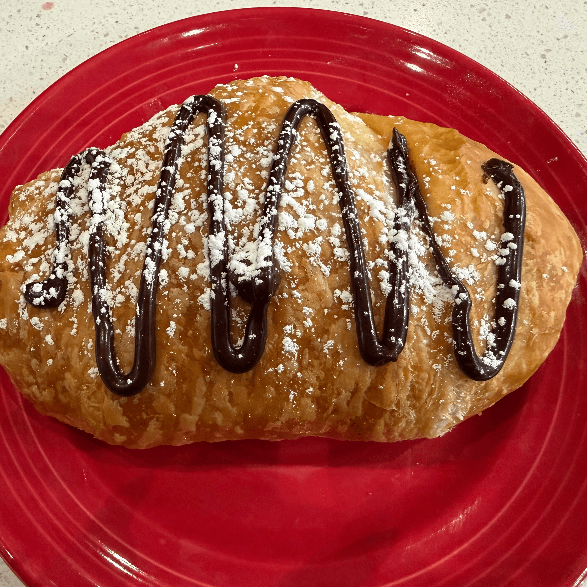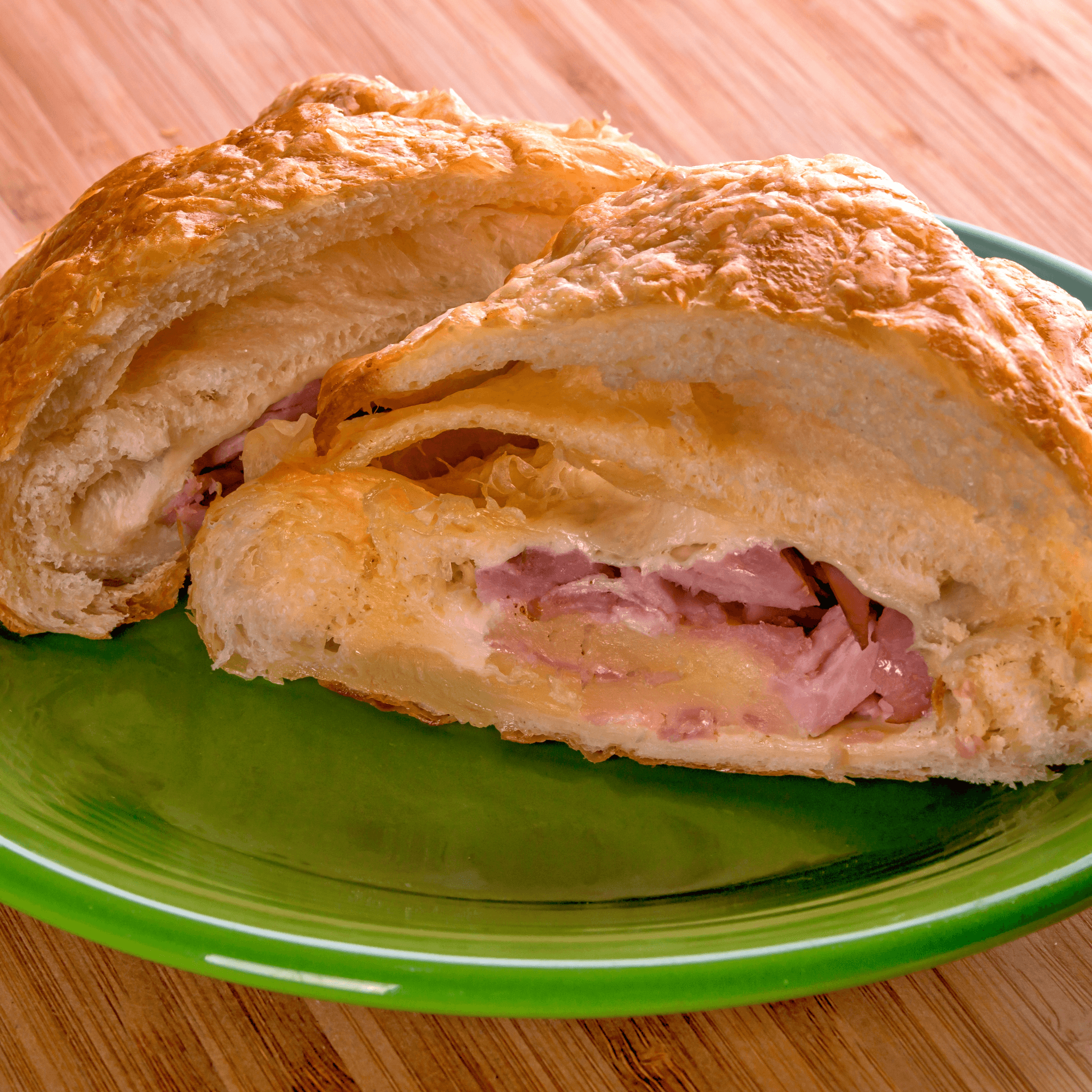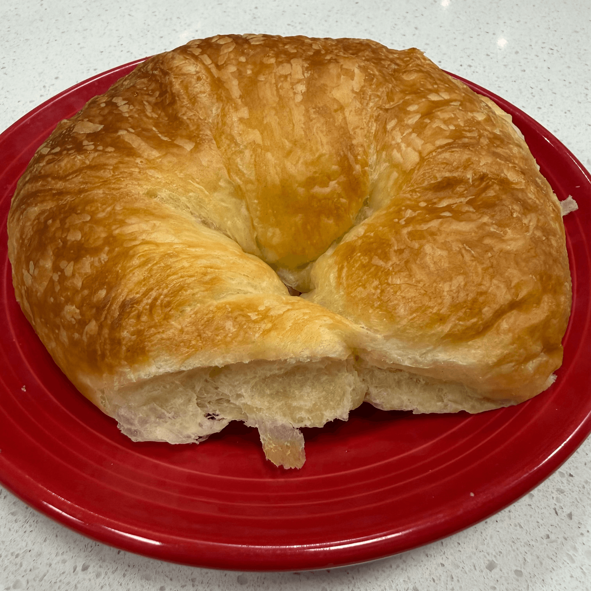 Our fresh baked croissant stuffed with ham and swiss cheese