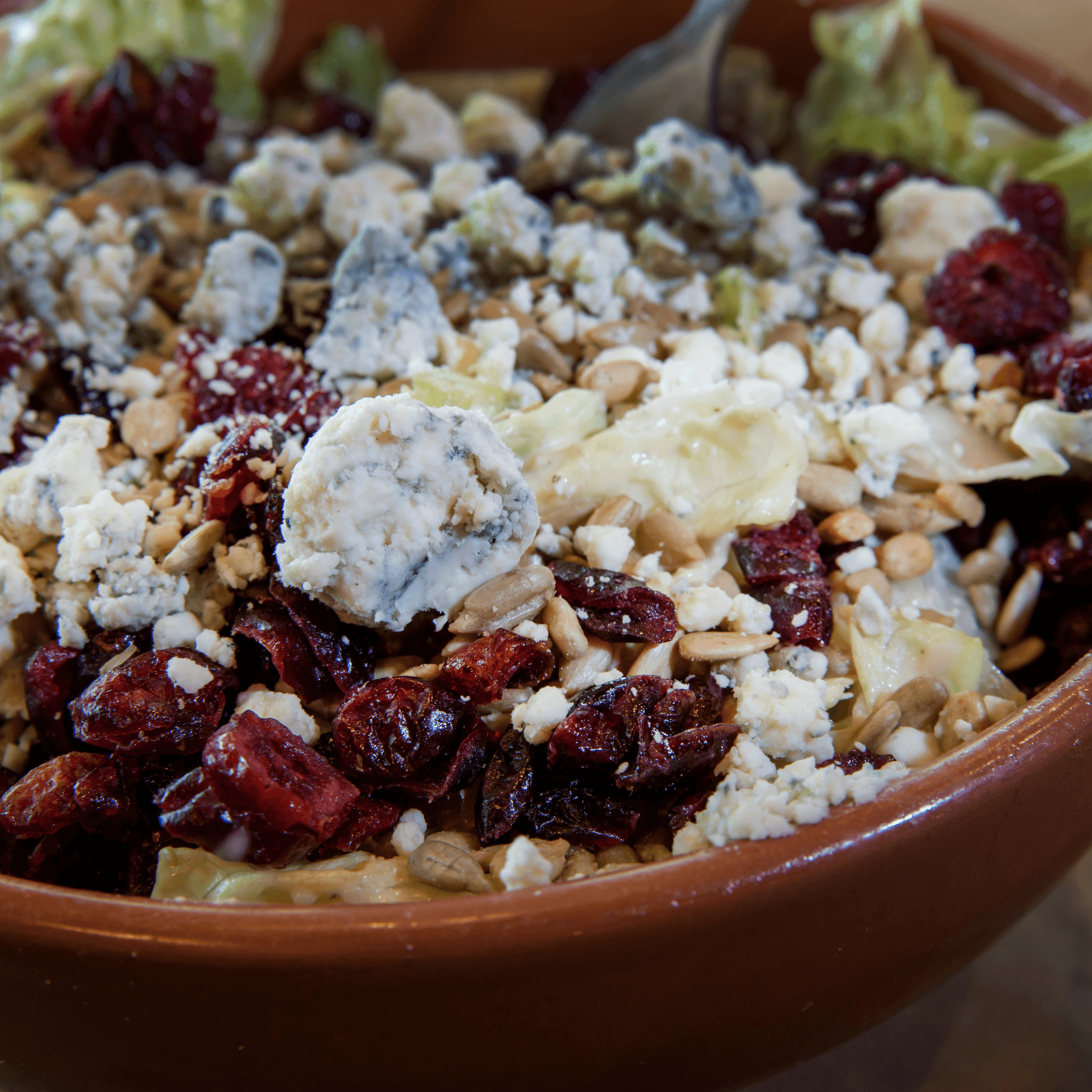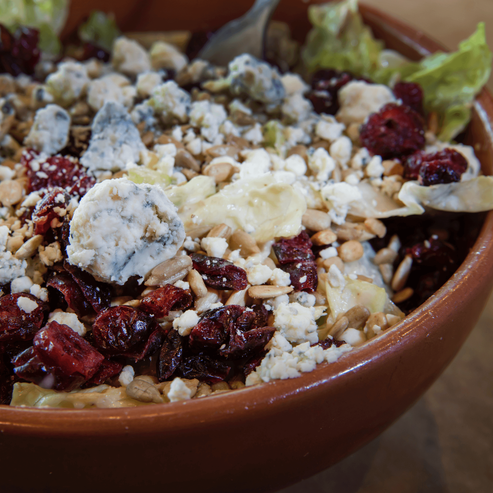 Bleu cheese crumbles, craisins and sunflower seeds paired with our classic caesar dressing.