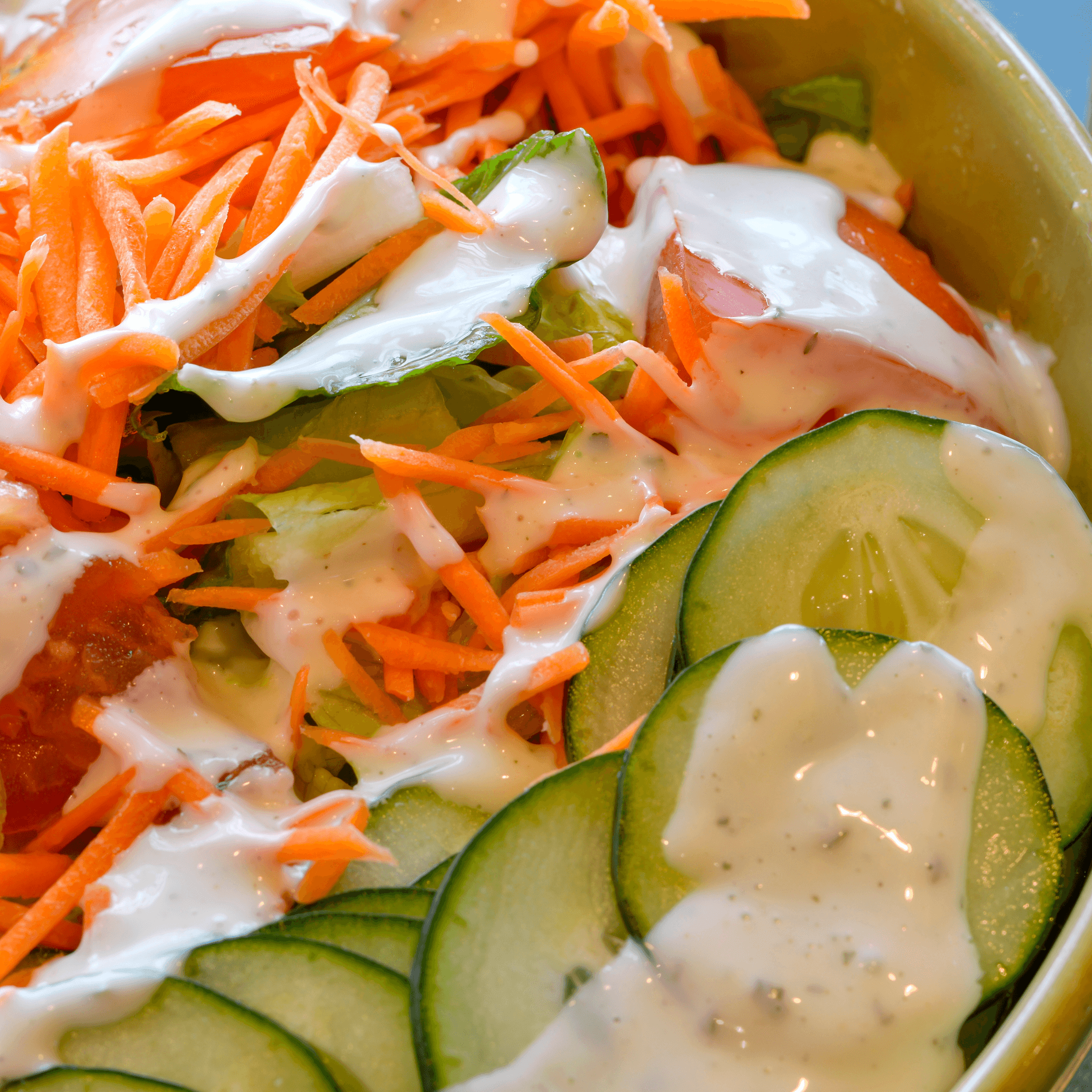 Fresh carrots, cucumbers, tomato and your choice of dressing