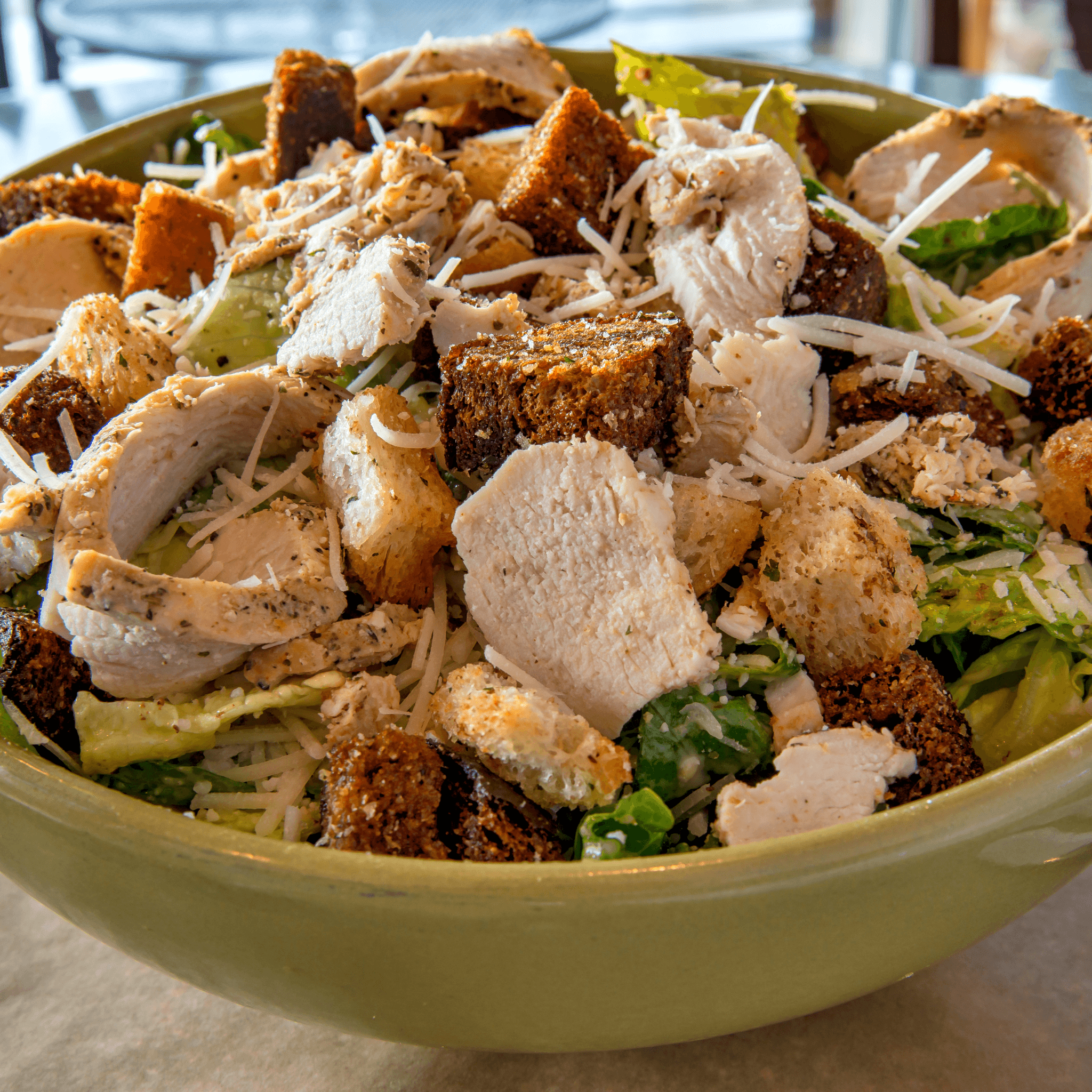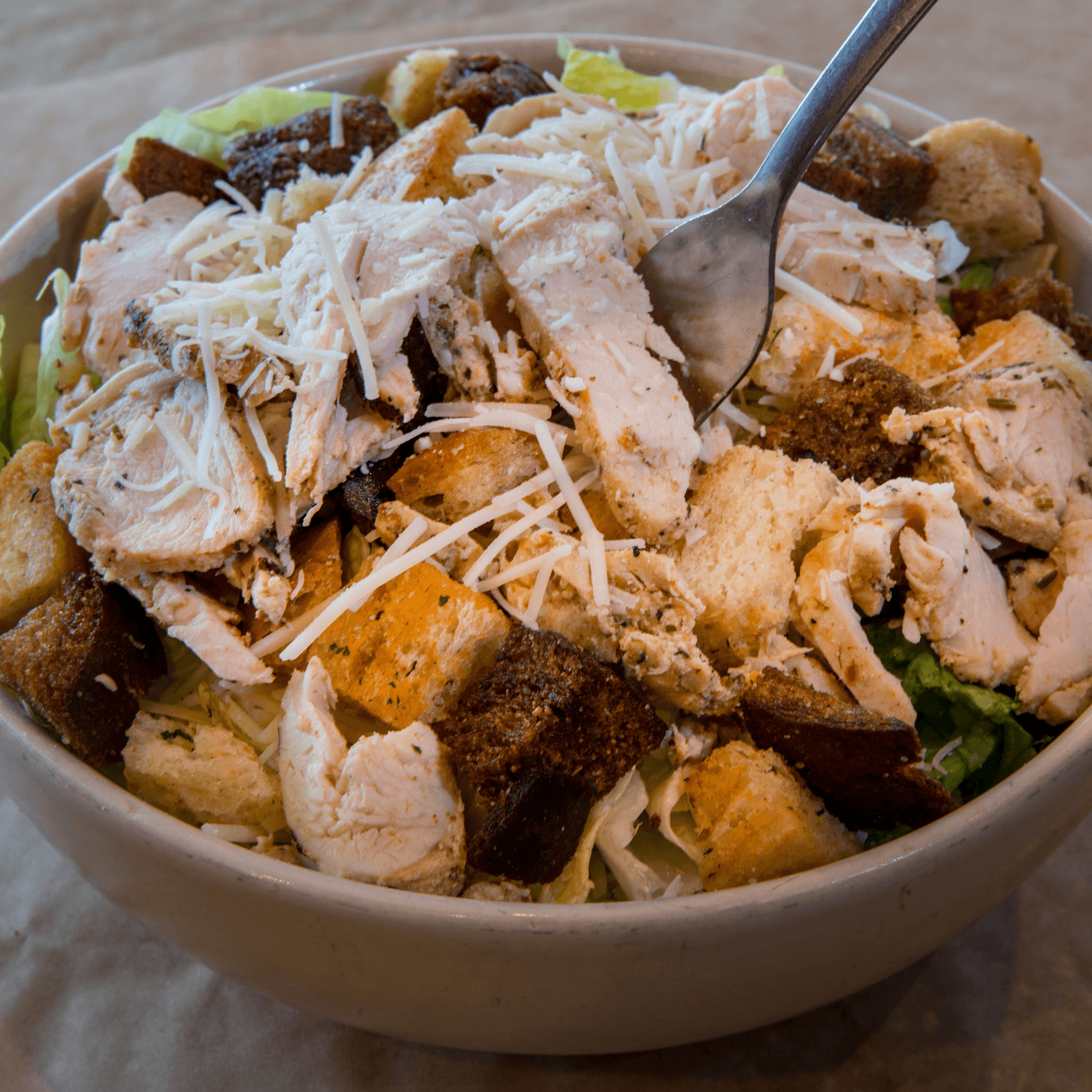 All-natural and antibiotic-free chicken, romaine, asiago-parmesan, freshly baked croutons paired with caesar dressing